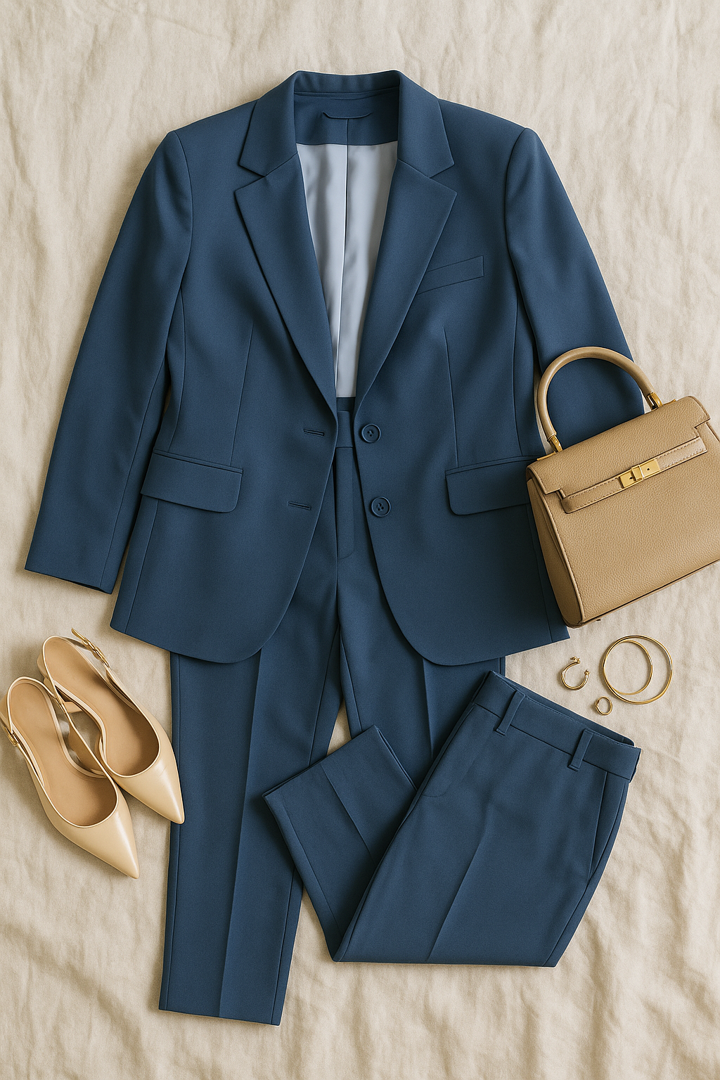• Look completo: Include blazer e pantaloni per un'eleganza immediata.